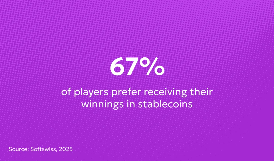 One of the strongest trends right now is the shift toward cryptocurrency. Within crypto, stablecoins are quickly becoming the preferred choice for many players. These digital assets are usually pegged to the US dollar and have low volatility, making them more practical for regular use compared to traditional cryptocurrencies like Bitcoin or Ethereum. In fact, a 2025 survey by SoftSwiss found that 67% of players prefer receiving their winnings in stablecoins due to faster transactions and ease of use.